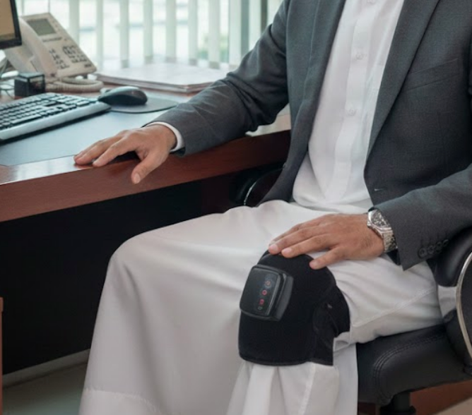 حرارة عميقة مع اهتزاز لطيف يزيل إحساس الشدّ بالركبة ويخليك ترجع تتحرك وأنت مرتاح وواثق.